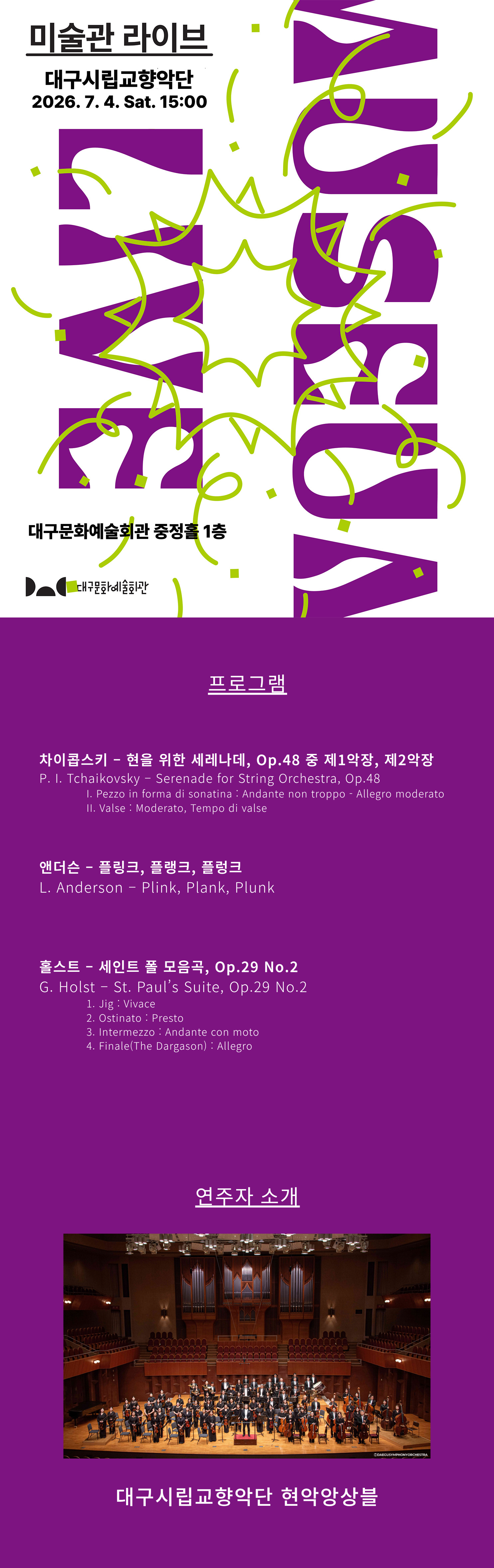 - 주최/주관 대구문화예술진흥원, 대구문화예술회관 / 대구시립교향악단